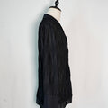 マイクロプリーツ生地を使用したスタイリッシュなオープンカラーシャツ。ロングカフスに加え、裾口はサテン切り替えが施されており、洗練されたデザインが特徴です。二色展開で、様々なコーディネートに対応。日本製の高品質アイテムです。