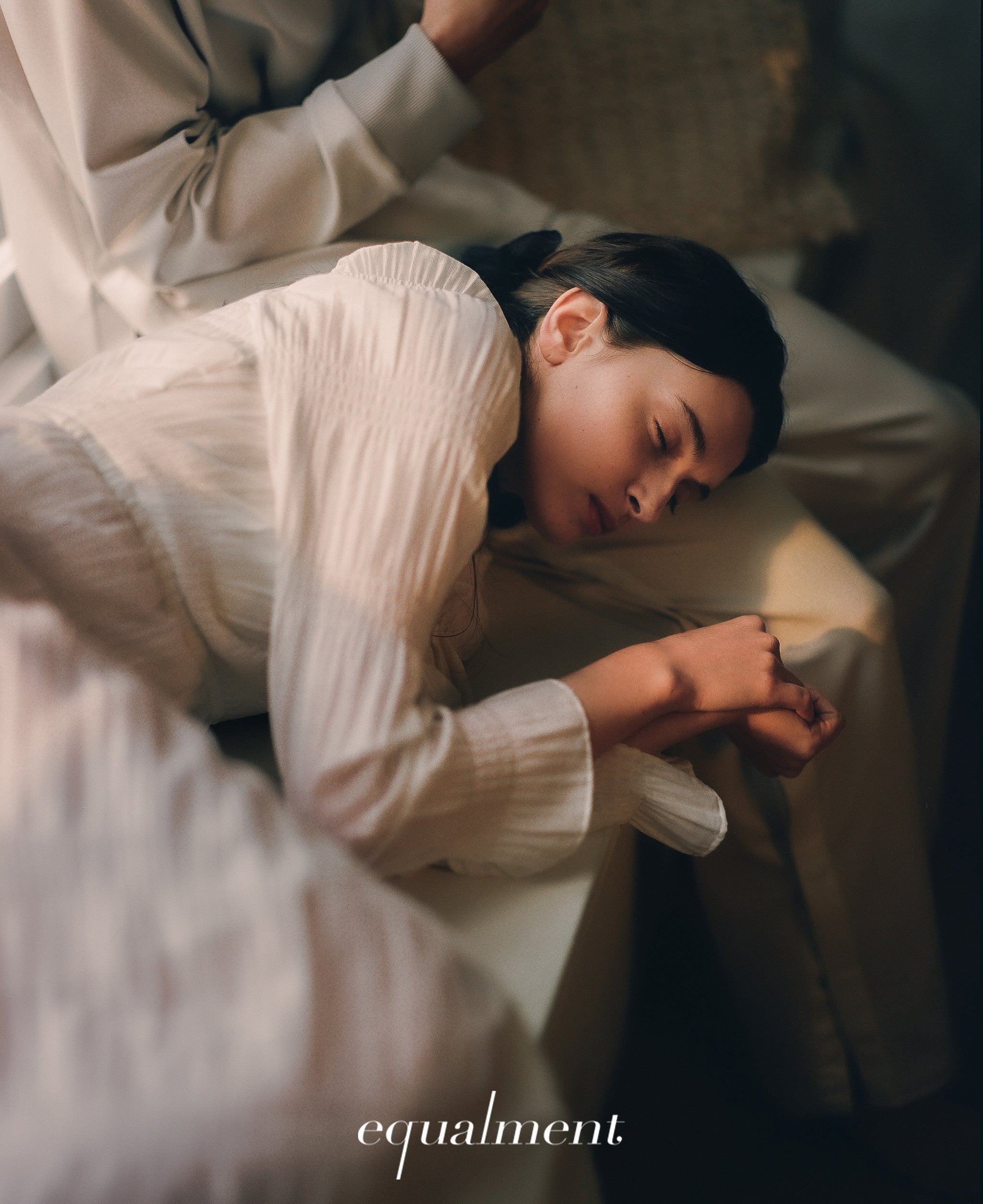 A dress has been created as part of Equal Men's Micro Pleats series, using a knit material that uses stretch yarn and features a random surface texture due to differences in shrinkage.