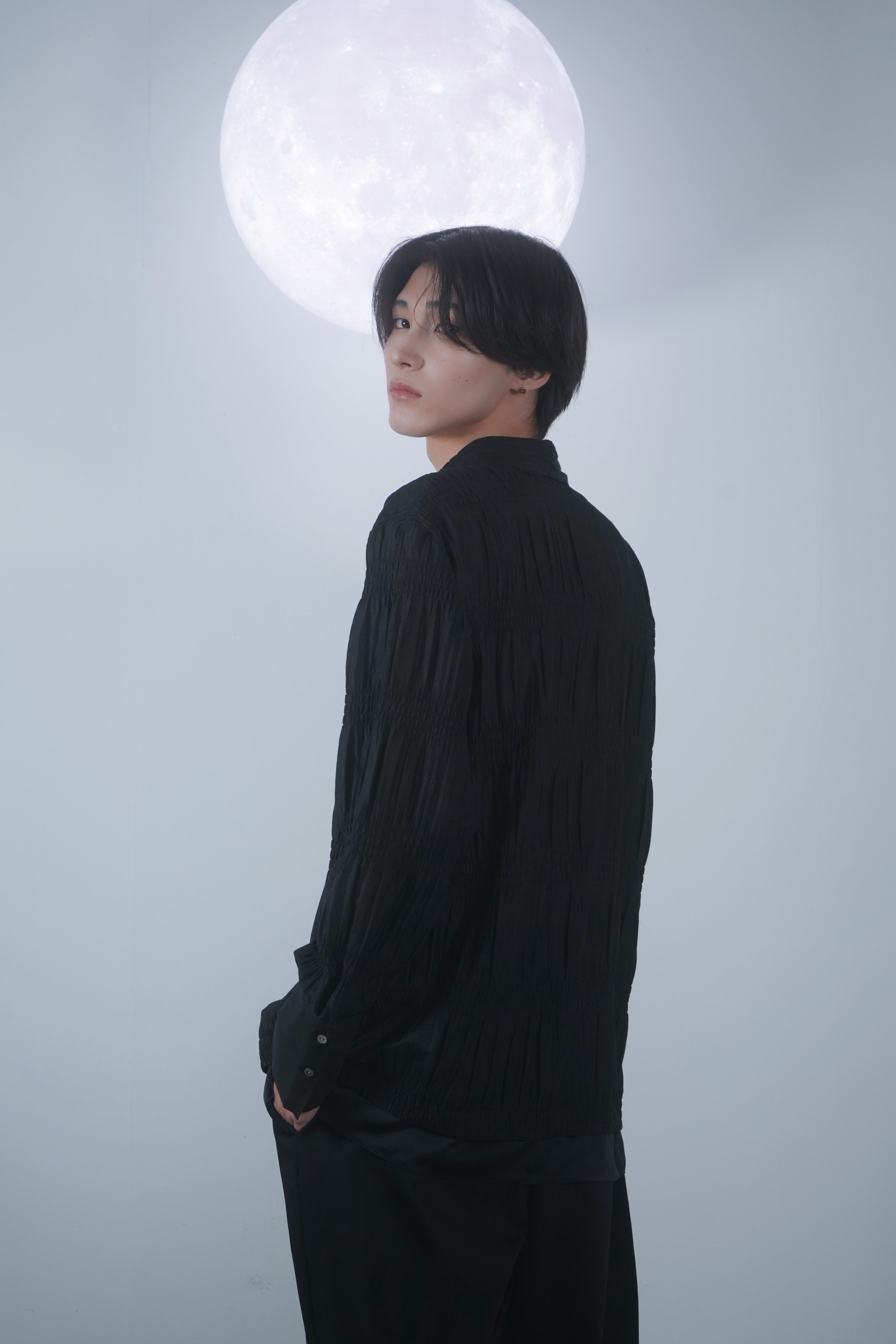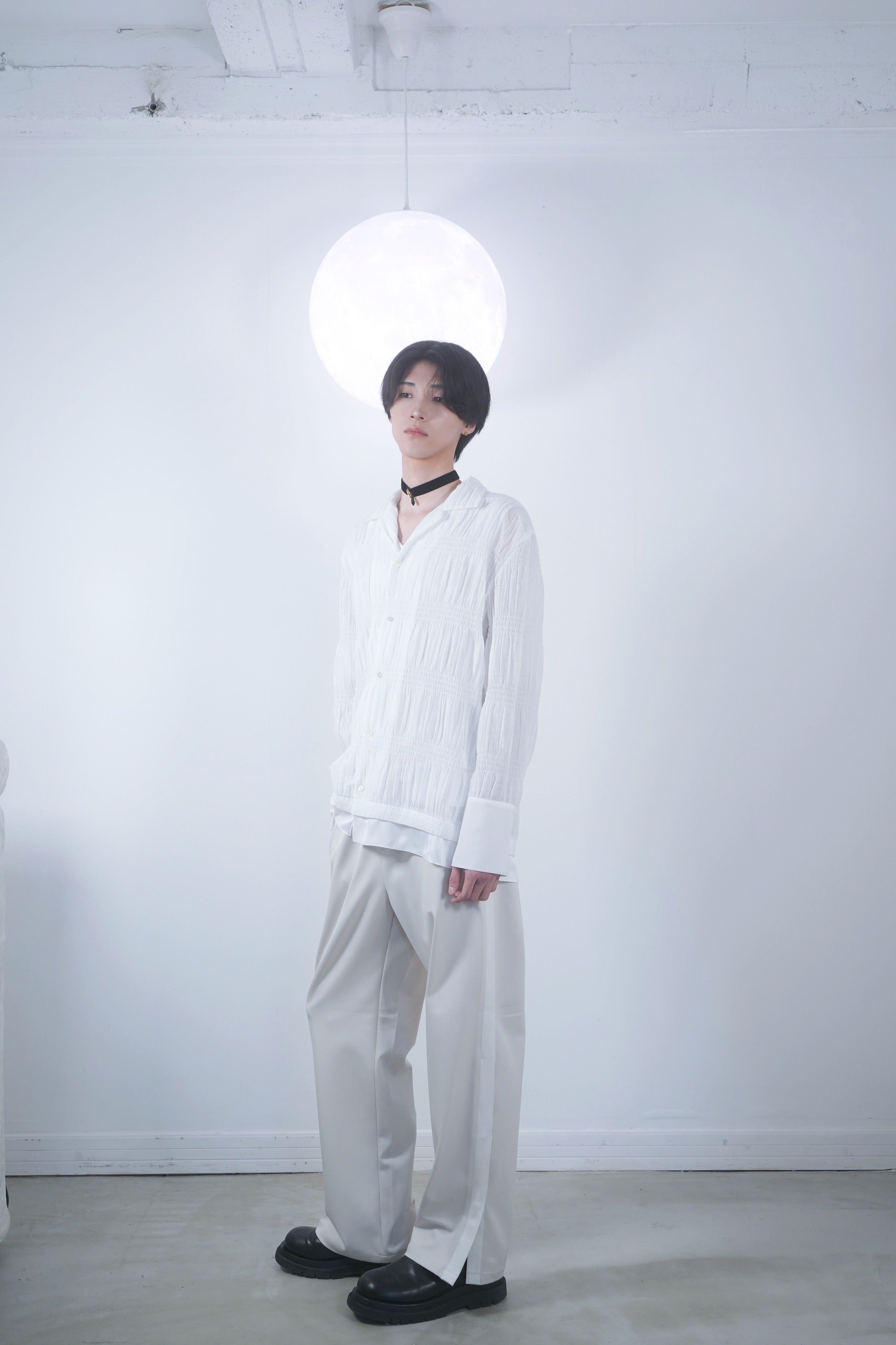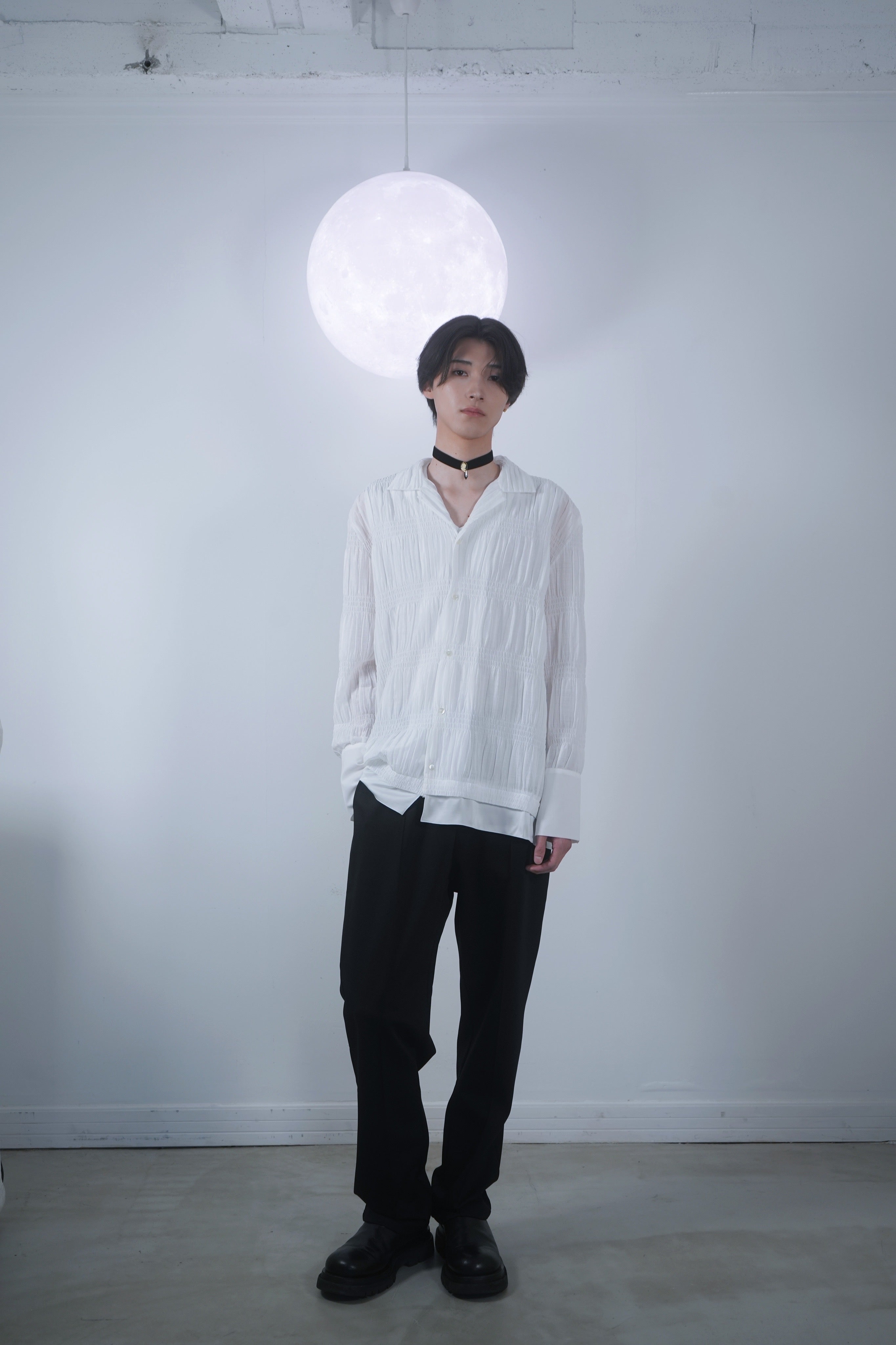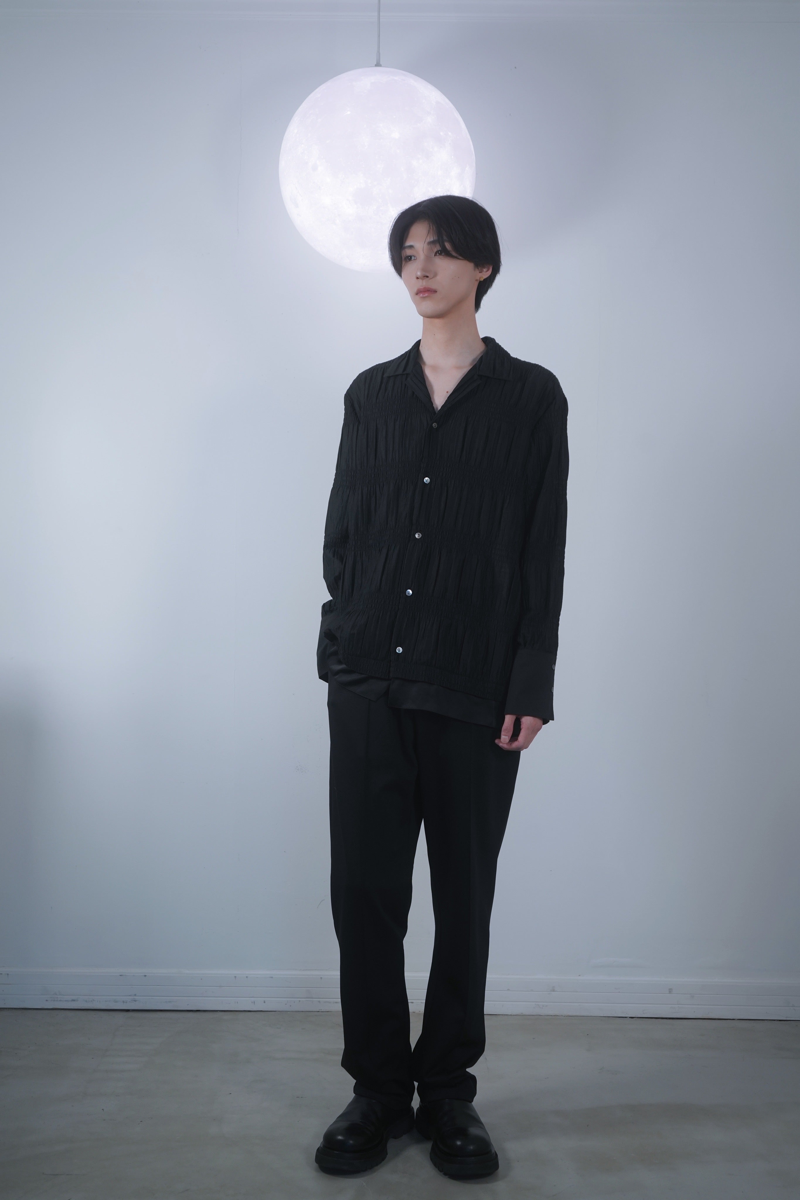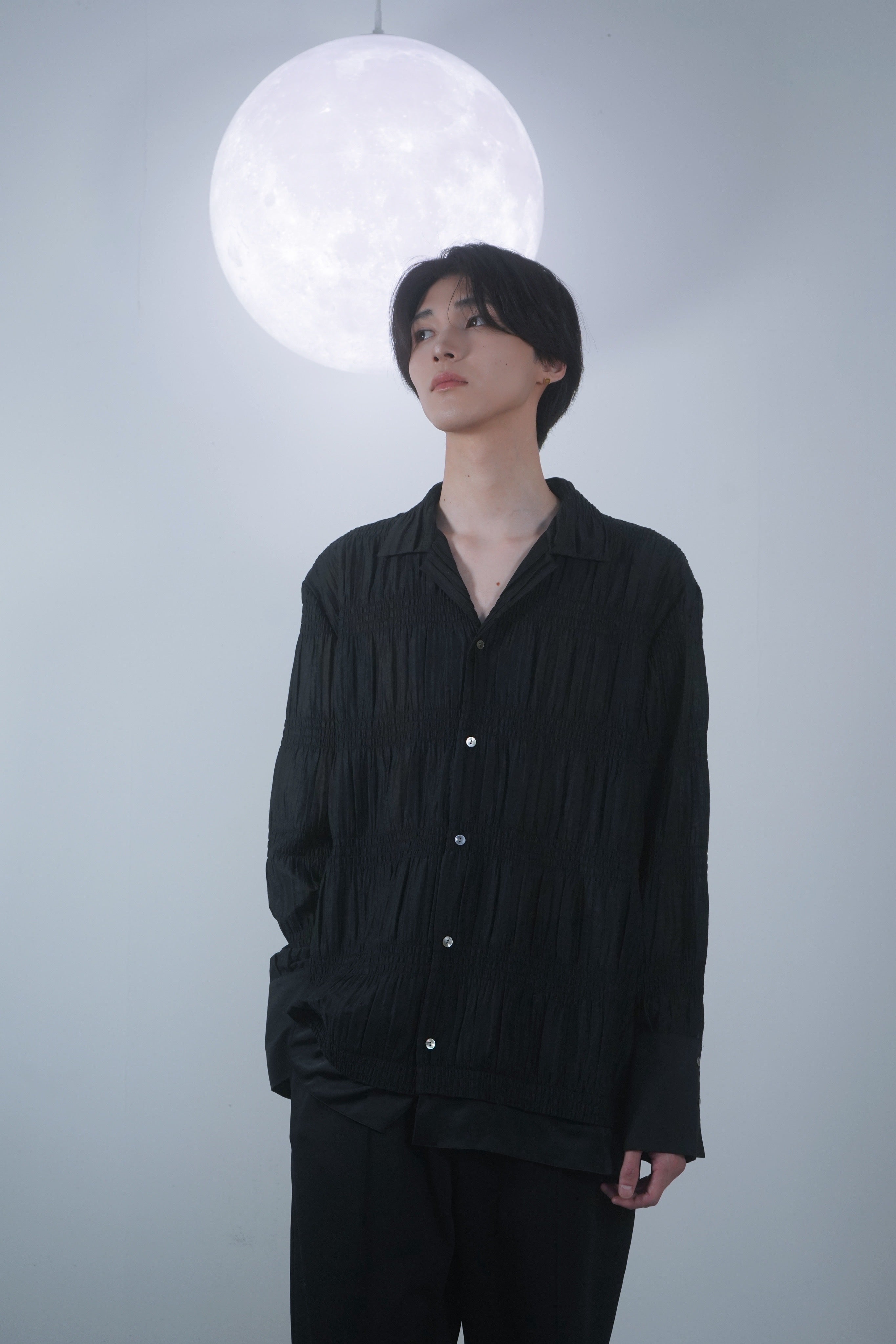 PLEATS OPEN COLLAR SHIRT